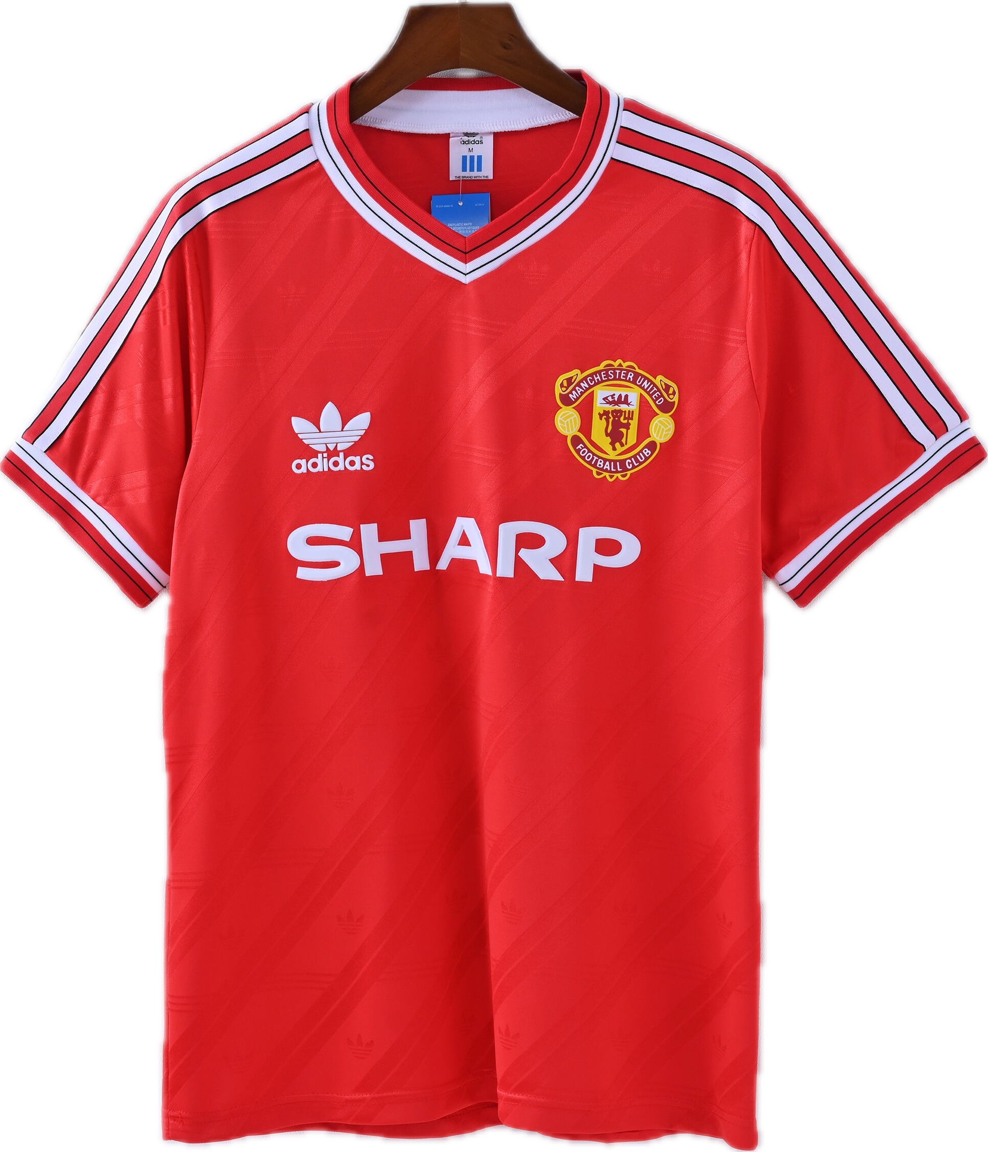 The 1986–1988 Manchester United home jersey is a vintage classic from the Adidas era, recognized for its clean red design with the iconic white V-neck and subtle striping. This kit was worn during Sir Alex Ferguson’s early years at Old Trafford, when players like Bryan Robson and Norman Whiteside represented the club. A timeless piece of football history, this jersey carries the heritage of United’s transition into one of the greatest dynasties in football. Perfect for collectors and fans who appreciate retro kits.